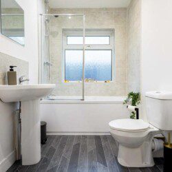 𝐒𝐩𝐚𝐜𝐢𝐨𝐮𝐬 𝐁𝐚𝐭𝐡𝐫𝐨𝐨𝐦 offers a great size bath with a powerful, mains powered shower.